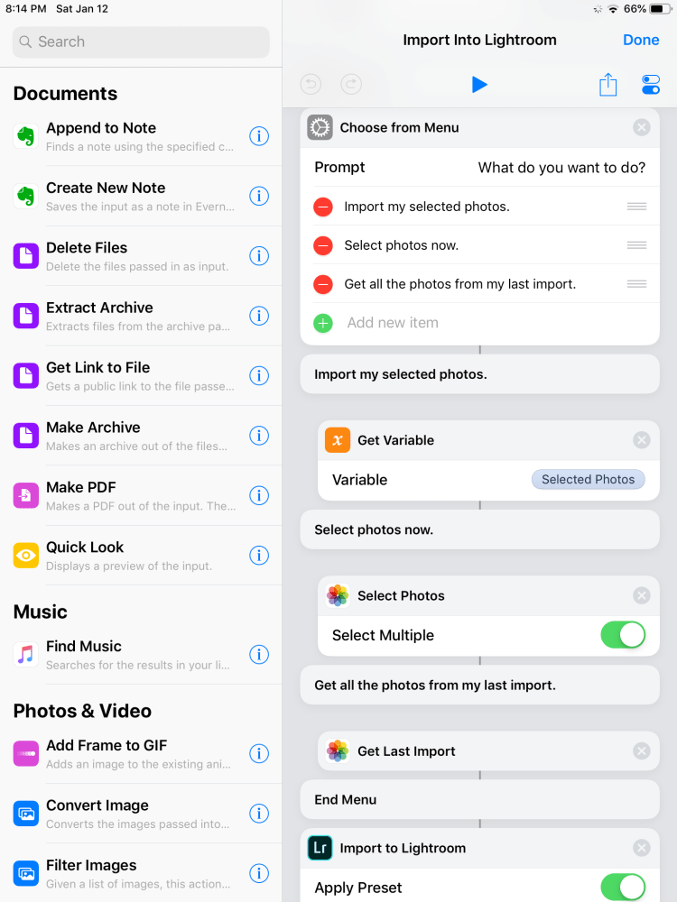 Adobe Lightroom CC for iOS added support for Apple’s Shortcuts app on January 11, 2019. That’s the update I’ve been waiting for.