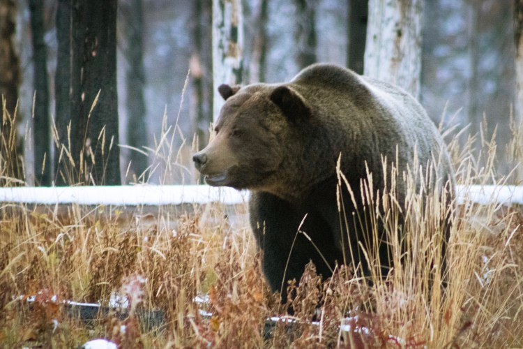 My first wild grizzly moped about the tree line wandering in and out of view. With hibernation approaching, the bear thankfully seemed more focused on foraging than on the human spectator just a few dozen yards away. I almost didn’t get a shot at all. The bear kept plunging its face into the brush to eat. My patience eventually paid off moments before it scurried into the coming dusk.